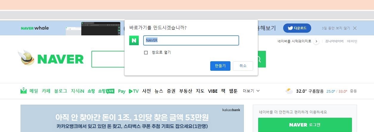 크롬을 이용한 네이버 바로가기 만들기
